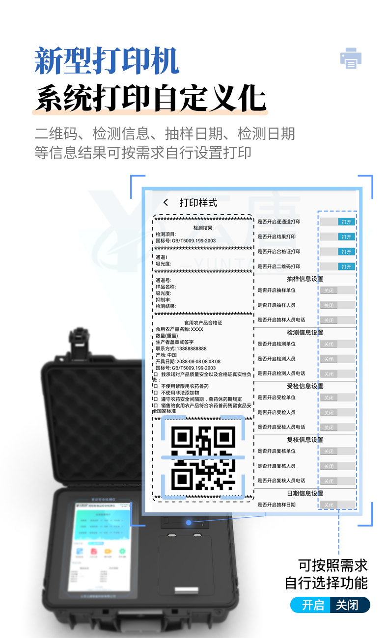 *10、系統(tǒng)打印自定義化,打印格式多樣化,產(chǎn)品合格證(國家標(biāo)準(zhǔn)要求),二維碼,抽樣信息、檢測(cè)信息,受檢信息、復(fù)核信息、抽樣日期、檢測(cè)日期等信息結(jié)果,可按需求自行設(shè)置打印。