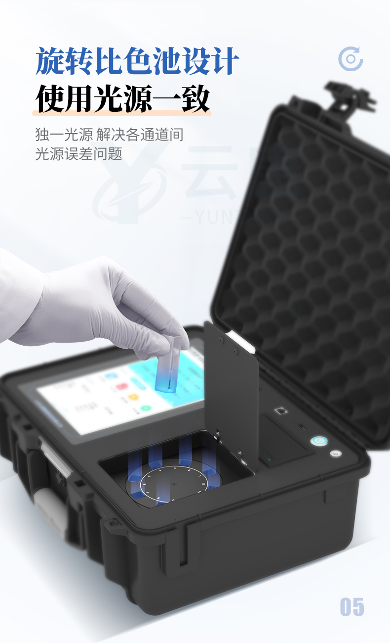 3.一體化便攜式快檢設(shè)備,采用交直流兩用供電方式,可連接車載電源,配備6ah大容量充電鋰電池,可以滿足現(xiàn)場及流動(dòng)檢測(cè)使用的需求。儀器尺寸:43×35×20cm, 主機(jī)凈重:5.1kg